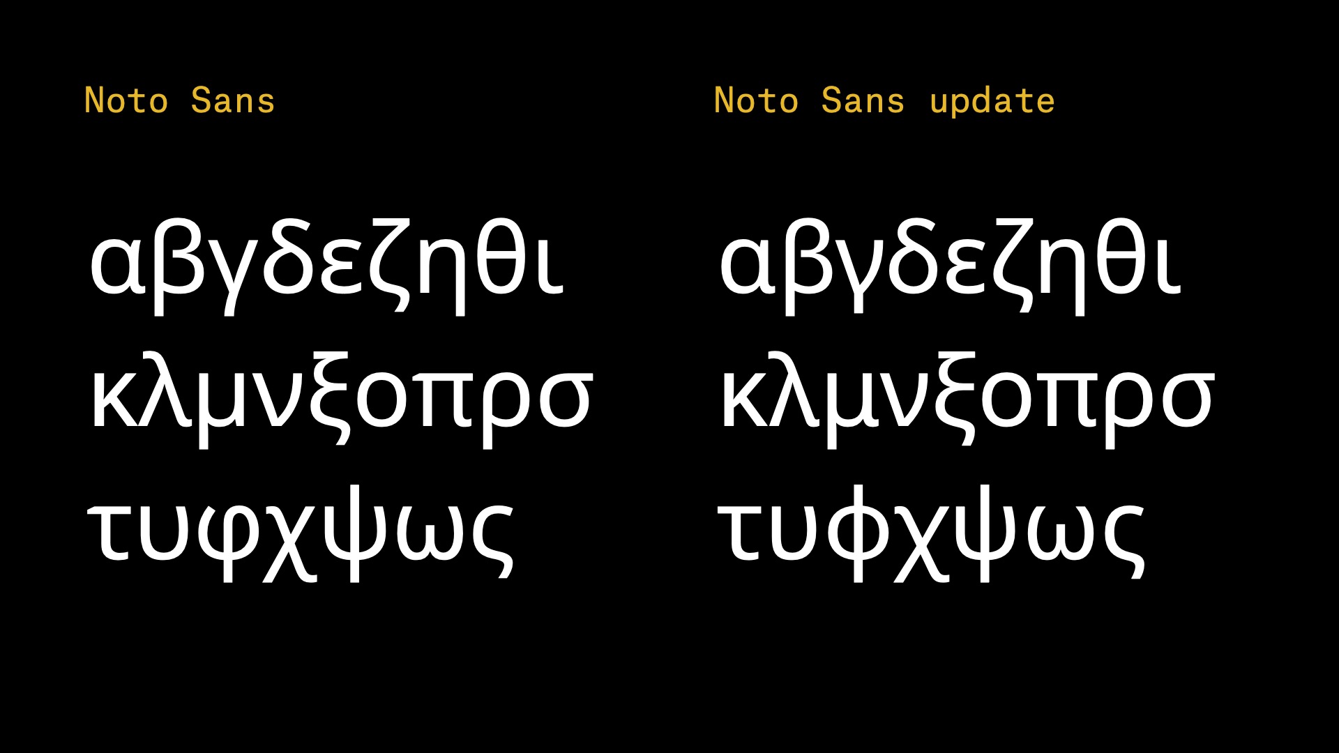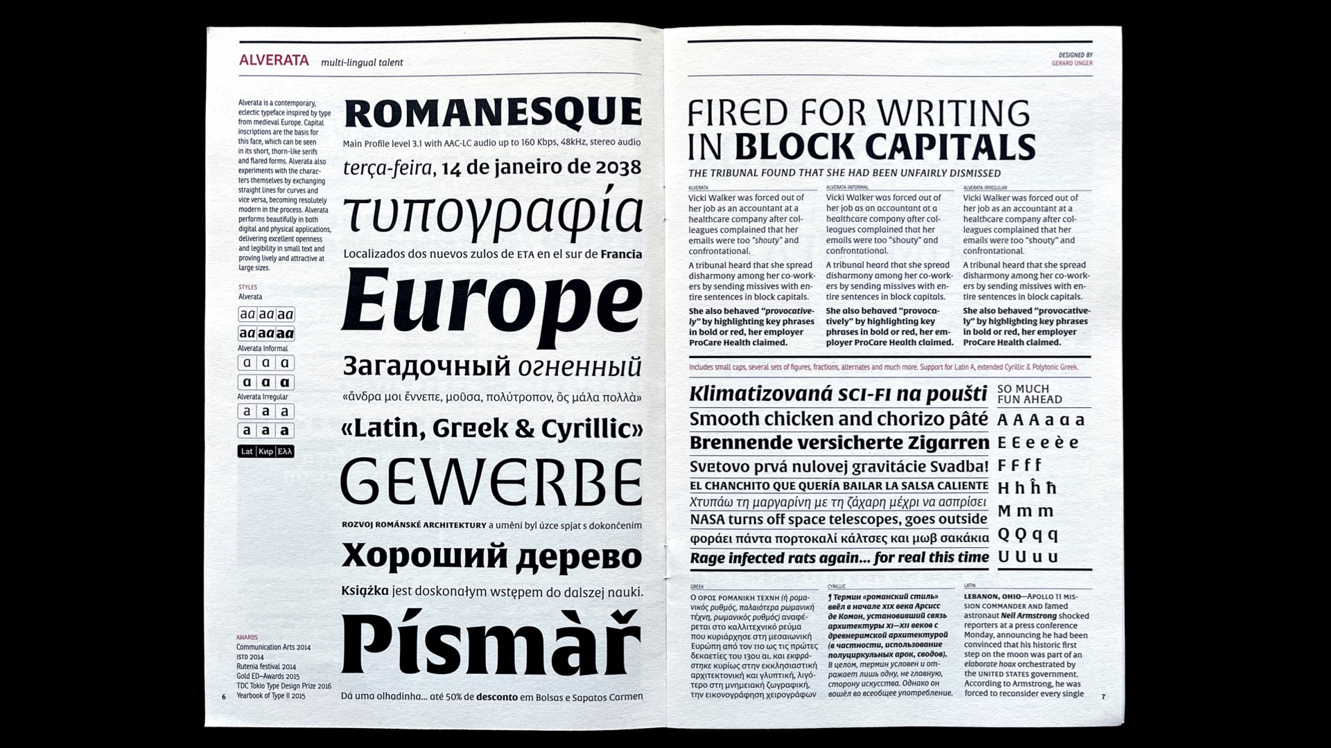 Her work includes: Colvert Greek (2012, typographies.fr), Parmigiano Greek (2014, Typotheque), SamsungOne Greek (2016, Brody Associates), LL Bradford Greek (2016, identity for Documenta14, Laurenz Brunner), LL Unica77 Greek (2017, Lineto), Stratos Greek (2018, Production Type), FauxFoundry and FauxGreek parametric font (2019), SauberScript Greek(2020, Typejockeys), Amstelvar, (2020, FontBureau) and redesign of Roboto and Noto Greek fonts (2021, Google Fonts).